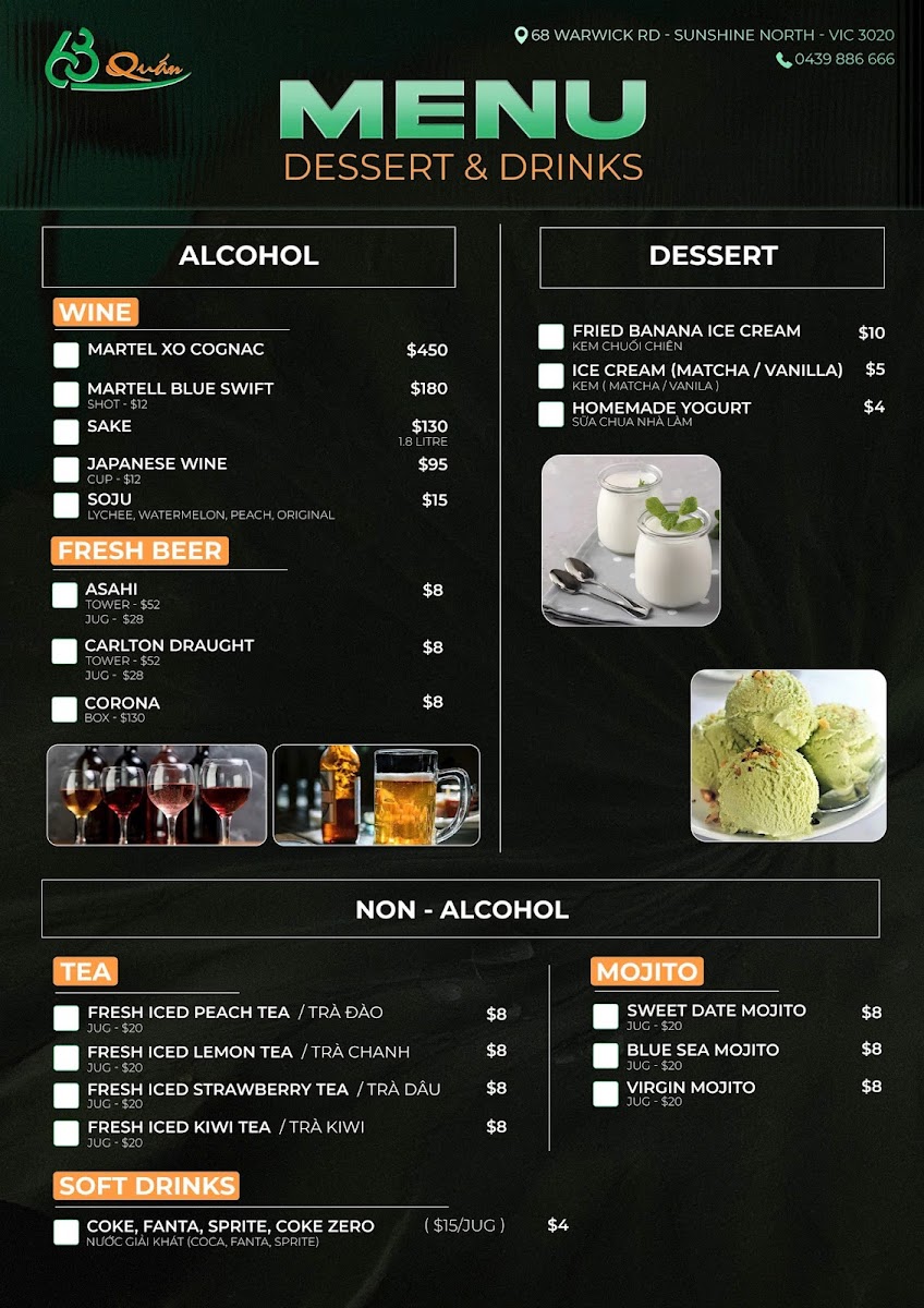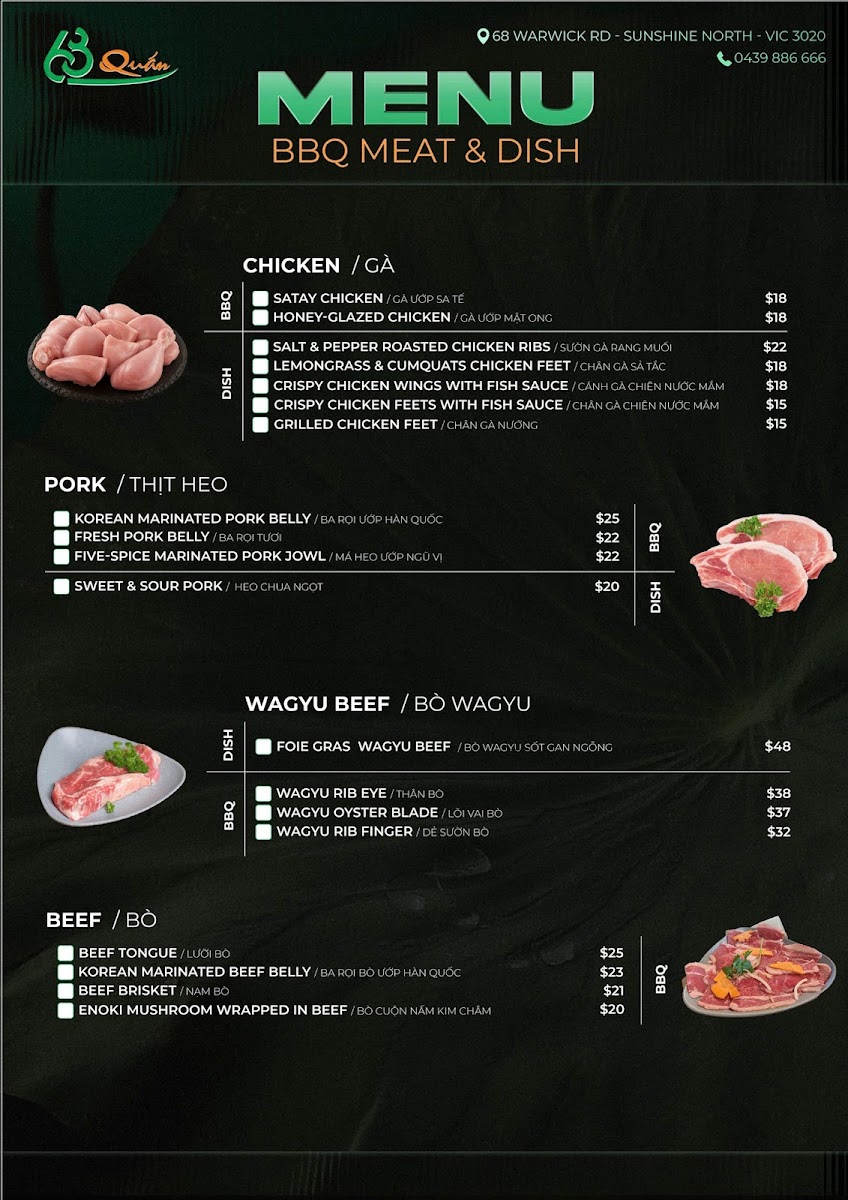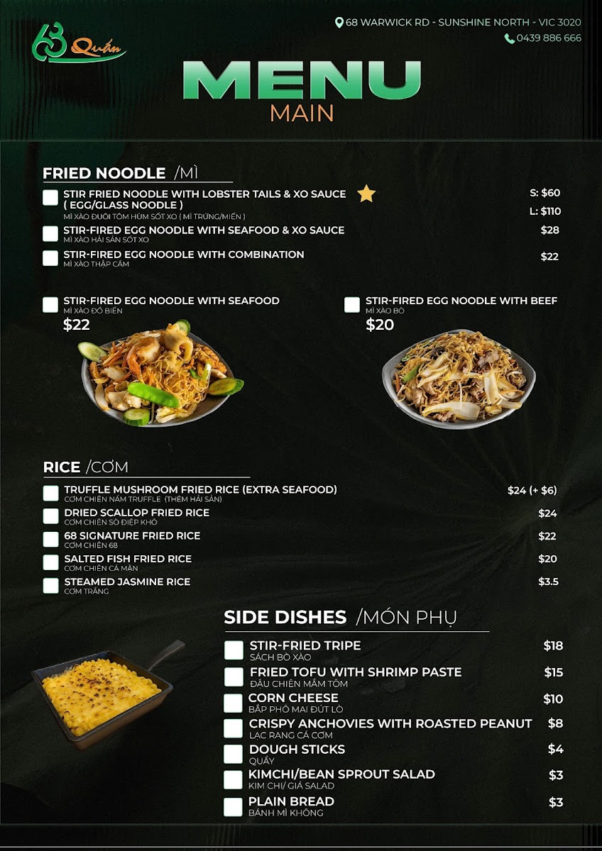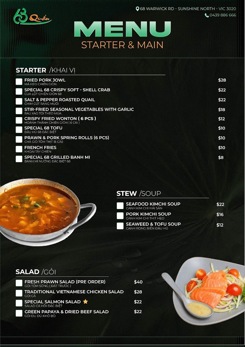 68 Quán - Vietnamese Hot Pot & BBQ Restaurant Menu