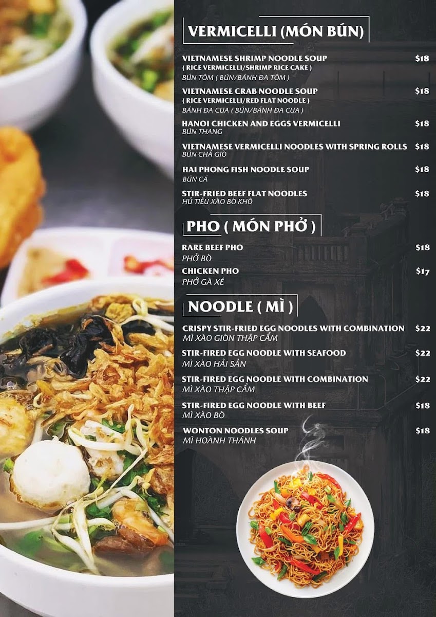 - All You Can Eat Menu: Priced at $49.99, this section includes a variety of Vietnamese hot pot and BBQ dishes. Offerings comprise seasonal garlic stir-fried vegetables, salted and peppered chicken ribs, sweet and sour pork chops, Vietnamese fried fish sauce chicken feet, a special fried tofu dish, pork and prawn spring rolls, chips, and a special grilled bread. This menu is designed for those seeking a full meal experience with multiple courses.